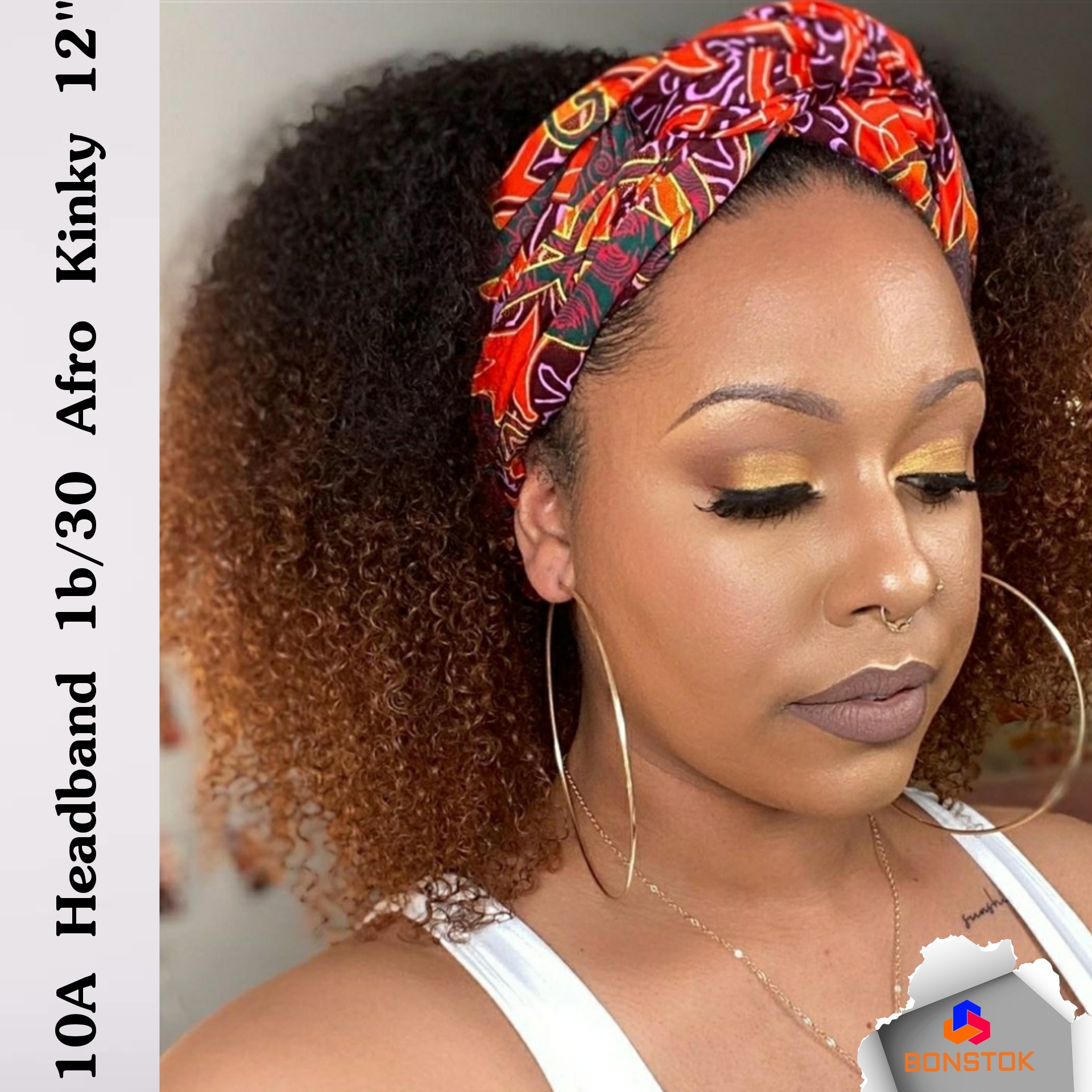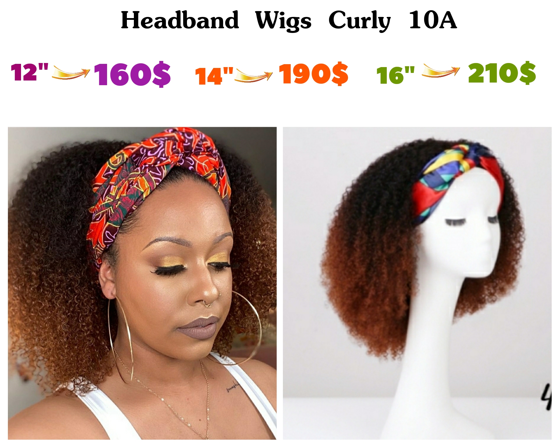 10A Headband Wig 1b/30 Curly 12" Real human hair